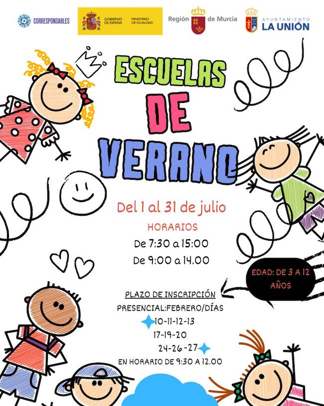 Servicios Sociales informa de la apertura del plazo de solicitud correspondiente al nuevo curso, dentro del Proyecto Corresponsables, ejecutado por el Ayuntamiento de La Unión. Los interesados tienen hasta el 27 de febrero para apuntar a menores de entre 3 y 12 años de edad.