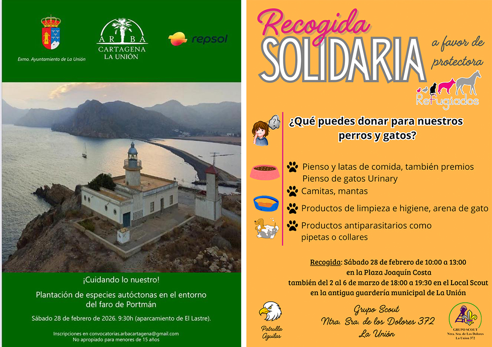 Sábado, 28 de febrero. Convocatoria de voluntariado de ARBA para una plantación este sábado en Portmán (9.30 horas) y en La Unión (10 horas): PINCHAR AQUÍ