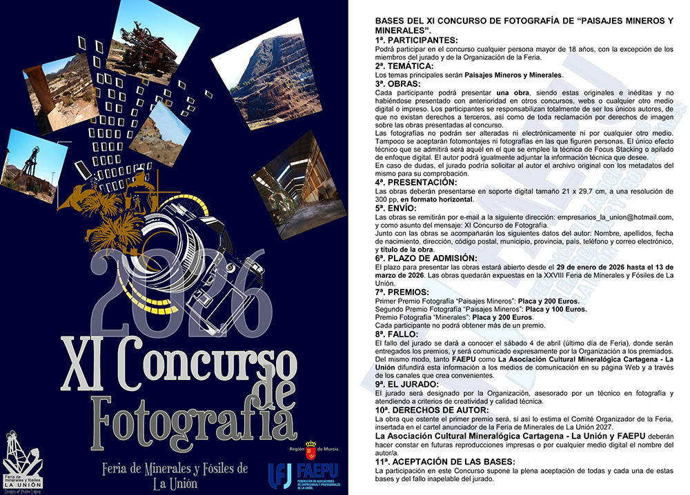 2. El décimo primer concurso de fotografía de la Feria de Mineras y Fósiles que organiza FAEPU de La Unión cierra hoy el plazo para que se apunten los interesados en participar:
