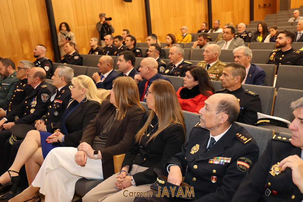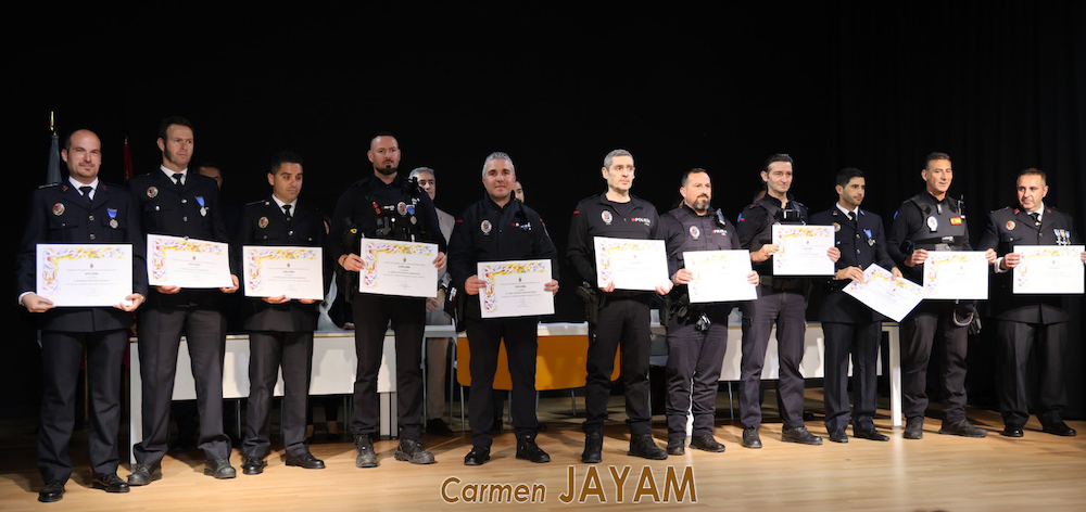 El siguiente capítulo fue la entrega de 'Medallas de distinción', que recayeron en Ricardo Sánchez Alcaraz Diego Segado Cervantes y Gonzalo Pereíra Lázaro, mientras que las 'Medallas por trayectoria y servicios' fueron parea Juan Luis Segado Cervantes y Pedro Martínez Gómez, cerrando la entrega de diplomas a los agentes.