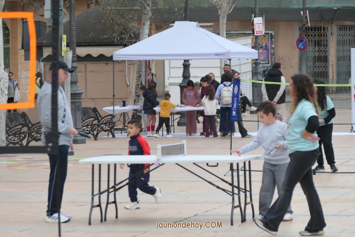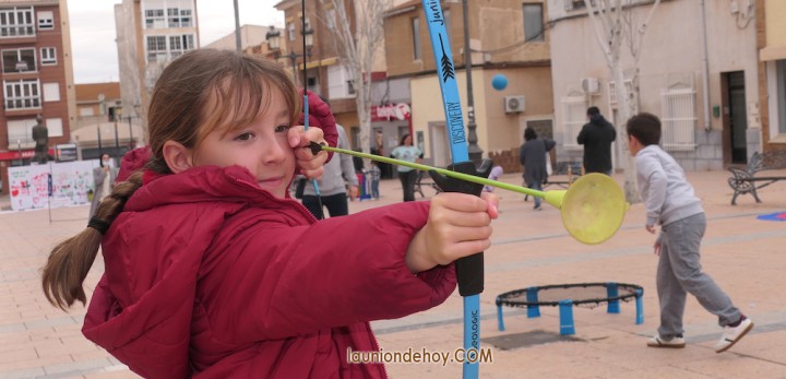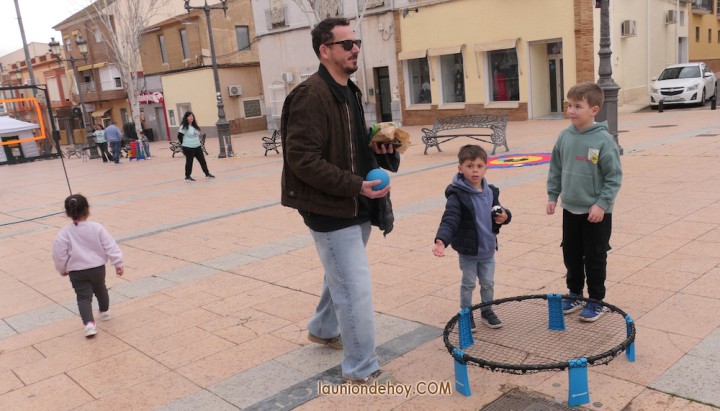 La plaza de Joaquín Costa de la ciudad de La Unión acogió una animada matinal de variados juegos tradicionales en los que participaron chavales, padres y abuelos.
