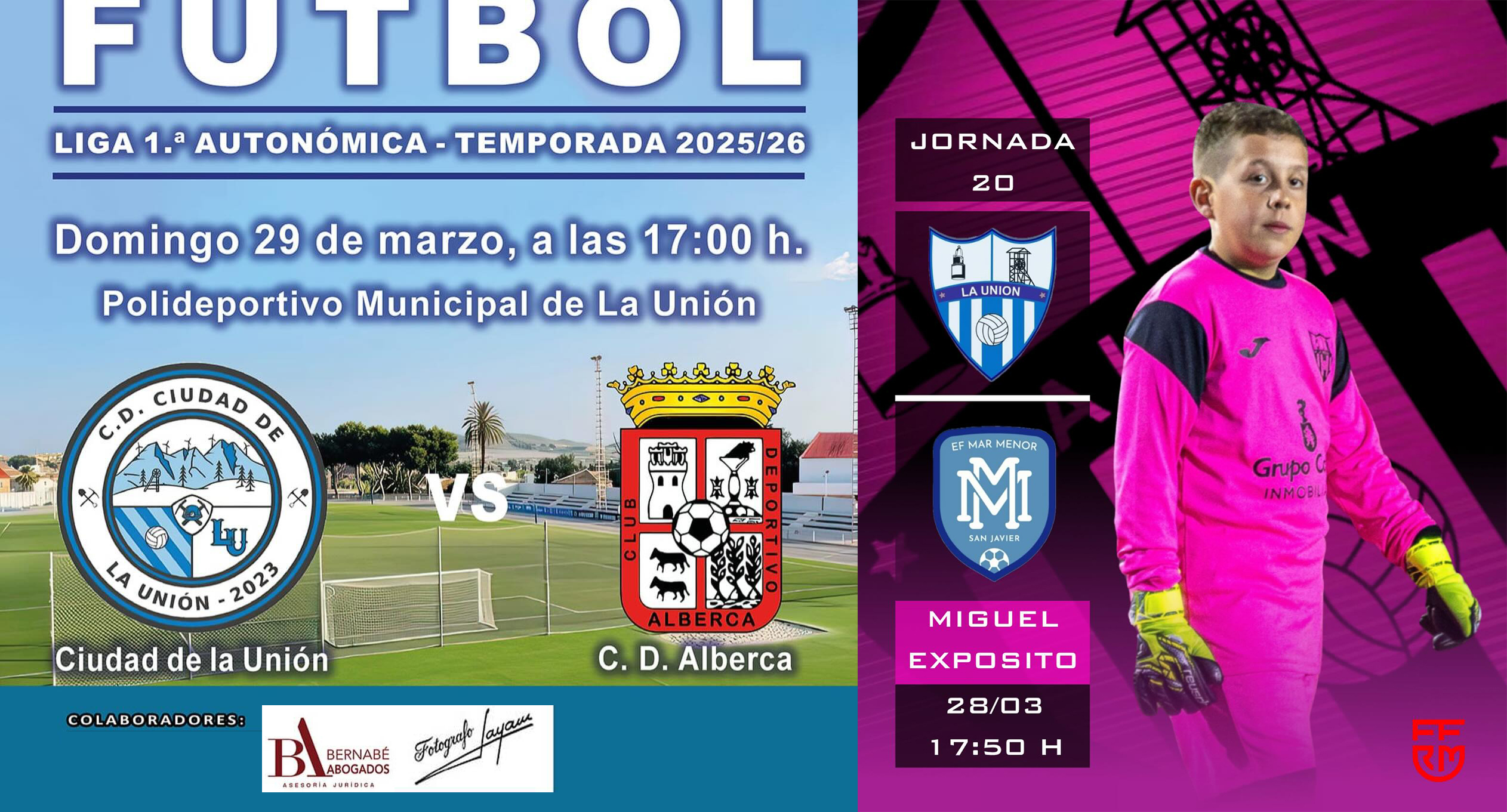 Primera autonómica: CD Ciudad de La Unión-CD Alberca, domingo a las 17 horas en el campo Miguel Expósito del polideportivo municipal Antonio Sánchez de La Unión