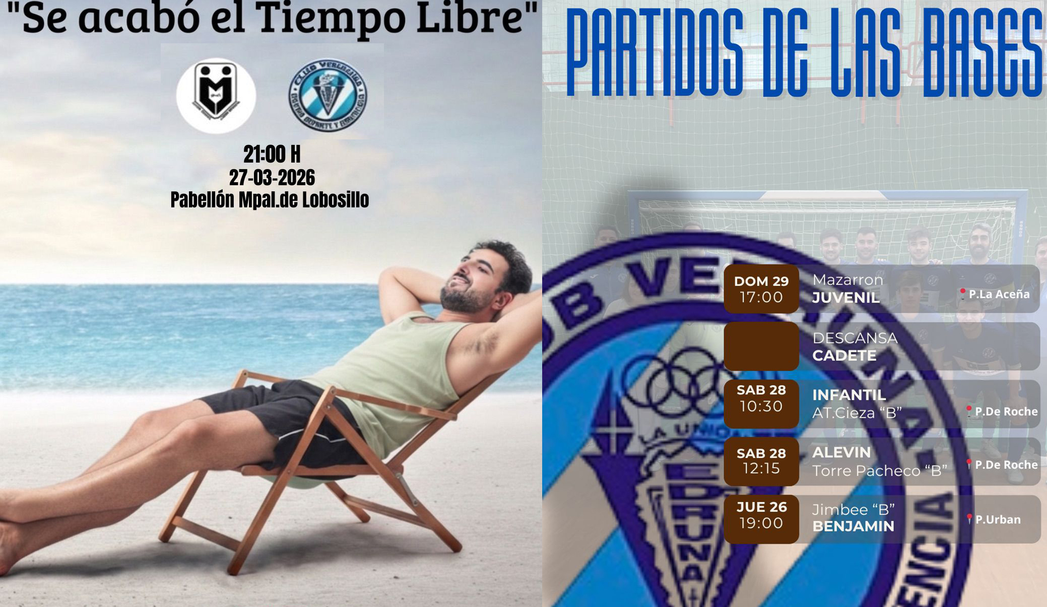 Llega el fin de semana del cambio de hora, cuando los relojes se adelantan. Las propuestas se activan hoy para La Unión con la misa en honor a la Virgen de la Caridad, el teatro y el partido del CD Vedruna de fútbol sala. El sábado es para saborear, pues empiezan las procesiones en la capital de la Sierra Minera, se clausura el certamen teatral y es noche para recibir distinciones, como el que recibirá el club de atletismo en Águilas y la cofradía en Cartagena. El día siguiente comenzará con las procesiones del Domingo de Ramos. Por la tarde, el 36 aniversario 'infeliz' de la 'degeneración' de la bahía, con acto en el Hotel Portmán. También ofrecemos agenda de voleibol, fútbol sala y de algunos partidos de fútbol como el Ciudad de primera autonómica y el juvenil de la AD La Unión. También de baloncesto, tanto en las competiciones federadas como en la liga local, que llega a la quinta jornada con todos los partidos en 'La Bombonera'.