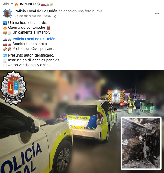* Recordamos que en la cabecera de este diario hay un acceso directo al perfil de Facebook del cuerpo de seguridad municipal de La Unión