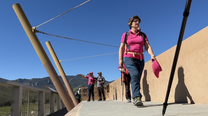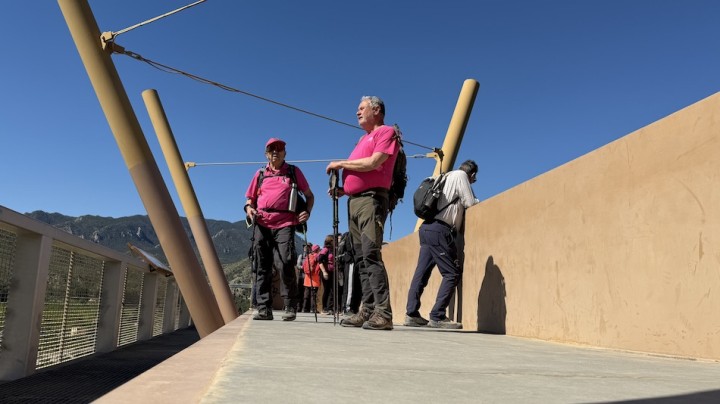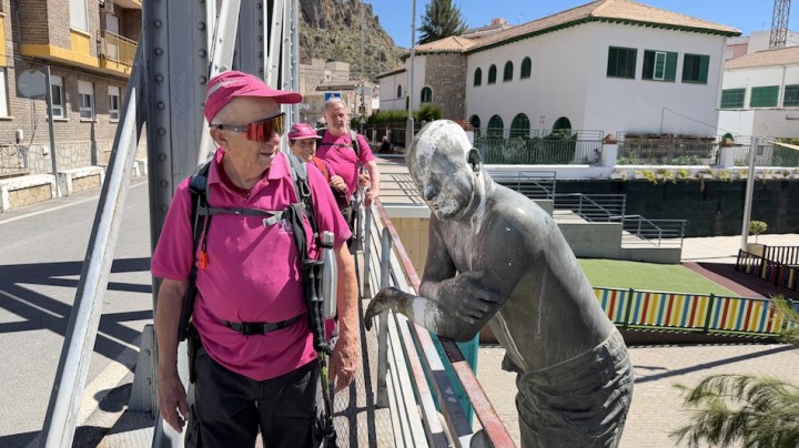 El punto de concentración fue el Puerto de la Cadena, para después de tomar café, dirigirse el grupo hacia Blanca, aprovechando el nuevo desvió de la autopista hacia Madrid. Una vez allí, se llevó a cabo una ruta circular, empezando por el acueducto del Barranco de Zapatero, para después ir al Azul de Ojós, puente colgante y pasarela, para, a través de huertos y por la orilla del Segura, llegar al mirador de Alto de Bayna, pasando por el parque de las Cuevas, para dar por terminada la ruta. Como siempre, no faltó la buena compañía ni las cervezas del final.