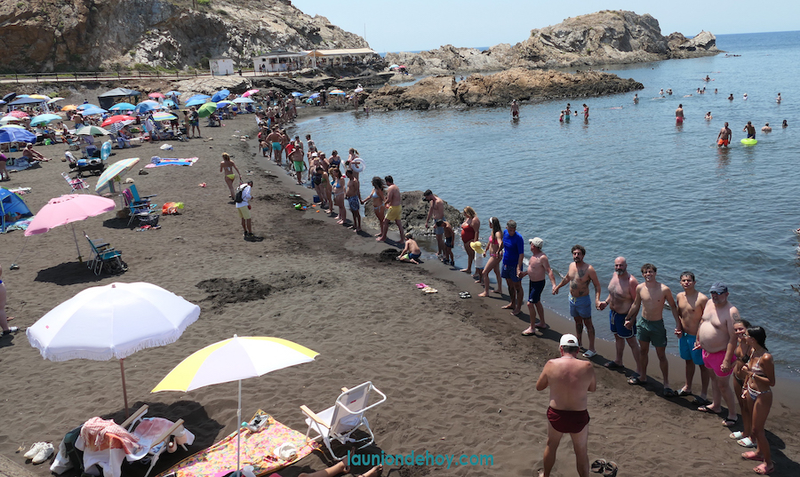 Varias decenas de bañistas, principalmente, han cubierto el frente de la playa de El Lastre hoy en la jornada surgida por una iniciativa popular mundial que busca crear conciencia sobre la importancia de la conservación del agua y la protección de los ecosistemas acuáticos, que en este caso se ha adaptado a la 'batalla' en pos de evitar el sellado de la bahía y reclamar su regeneración.