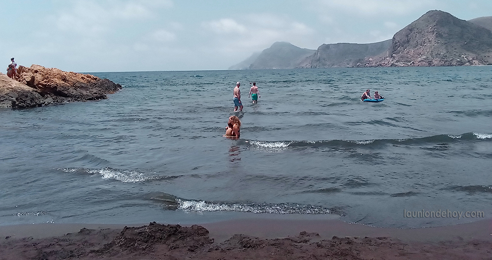 Los bañistas adultos deben andar unos cien metros para que el agua cubra este año por encima de la cintura, pero a la vez es más amplia la zona de baño para los niños.