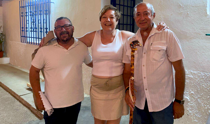 El artesano Reinaldo Calle ha entregado en El Garbanzal otro de sus artísticos cayados, como se observa en la imagen. El acto estuvo enriquecido por un trovo de Jose Antonio Beltrán (primero por la izquierda del lector).