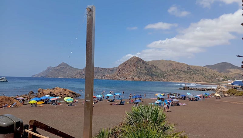 Dos usuarios de la playa del Lastre de Portmán se han dirigido a nuestro 'Buzón de los lectores' para exponer que la ducha instalada hace unos días "no tiene utilidad cuando el aire sopla, aunque no sea muy fuerte, pues el chorro de agua se va hacia donde no hay plataforma, siendo lo más habitual que empape una papelera que tiene al lado. La idea de instalar este servicio esta bien, pero siempre que se asegura su utilidad en todo momento", exponen.