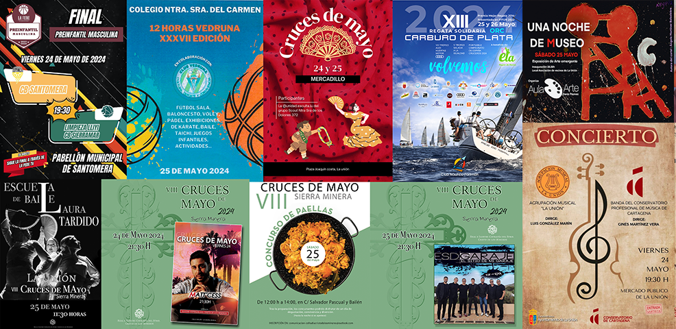 Otras jornadas intensas y variadas que comienzan hoy con la final regional de baloncesto preinfantil que disputa el CB Sierramar en Santomera a la misma hora que comienza en el Mercado Antiguo el concierto de la AMLU y la banda del Conservatorio de Música. Sigue la actividad con las cruces de mayo procesionistas y se irán sumando 'las 12 horas Vedruna', un mercadillo scout, una exposición de arte en la sede de la asociación de vecinos, el partido copero de fútbol sala y el inicio del torneo de fútbol base 'Sirenas Cup.