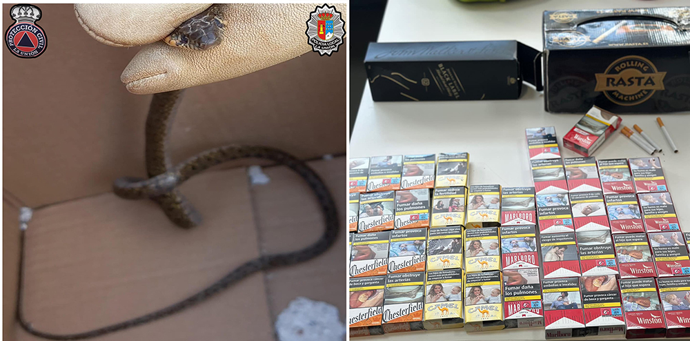 Han sido dos recientes actuaciones de la Policía Local de la Unión. La serpiente apareció en un garaje, siendo recogida por agentes policiales y de Protección Civil, que la soltaron después en zona forestal. Por su parte, la observación de que vendían tabaco a un menor de 15 años permitió a los policías descubrir cajas con paquetes de cigarrillos para vender sin existir licencia.