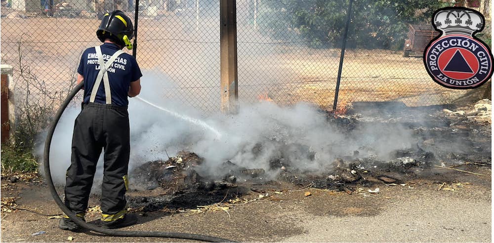 Protección Civil de la Unión informa de que ha intervenido, junto a bomberos de Cartagena y del centro de extinción de incendios Mar Menor de Los Alcázares, Policía Local y Guardia Civil en un incendio que ha tenido lugar en un edificio comunitario. Sólo se han producido daños materiales. Otro fuego (fotos adjuntas) se declaró en unas maderas, siendo apagado por el cuerpo unionense. Los vecinos retiraron un contenedor de basura que estaba próximo, informa el cuerpo policial.