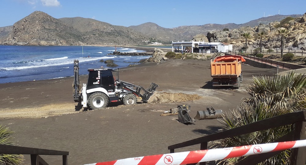 La Demarcación de Costas del Estado en la Región de Murcia, conforme a lo solicitado por el Ayuntamiento de La Unión, ha iniciado los trabajos para la puesta a punto de la playa de Portmán.