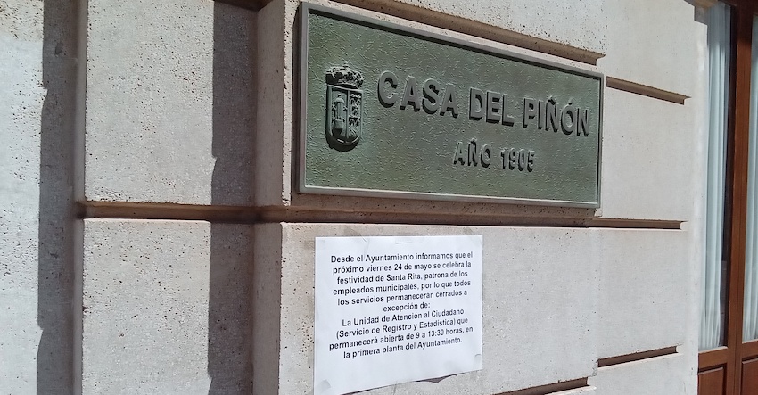 El Ayuntamiento de La Unión informa que, debido a la festividad de la patrona de los funcionarios municipales, mañana todos los servicios permanecerán cerrados salvo la Unidad de Atención al Ciudadano (Servicio de Registro y Estadística), que funcionará de 9 a 13.30 horas en la primera planta de la Casa del Piñón.