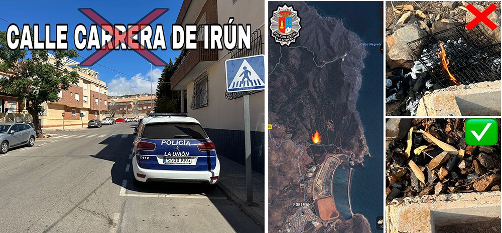 La Policía Local de La Unión informa de su actuación con un menor que conducía un coche a gran velocidad por la calle Carrera de Irún de la ciudad y de la denuncia propuesta a un grupo de personas que llevaban a cabo una barbacoa en una pinada de Portmán.