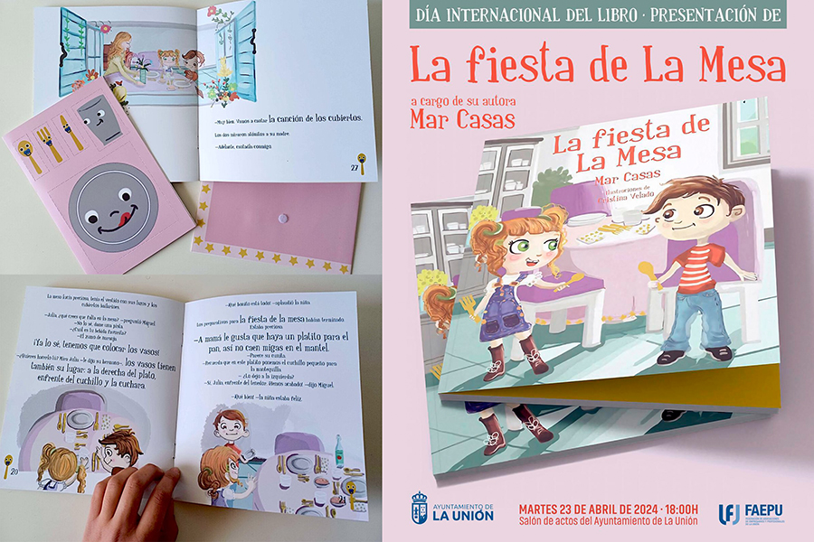 Es el título del libro pedagógico sobre una mesa bien puesta que ha escrito Mar Casas y que será presentado hoy, martes, a las seis de la tarde, en el salón de plenos del Ayuntamiento de La Unión, con presencia de la edil de Cultura, Aurora Ródenas, y el presidente de la Federación de Asociaciones de Empresarios y Profesionales de La Unión, Carlos Bernabé. Entrada gratuita. La publicación incluye una canción, una historia y un mantel desplegable con todos los elementos del servicio de mesa.