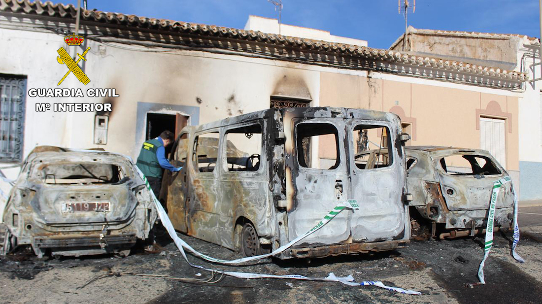 La Guardia Civil, tras la investigación, concluye que el origen estuvo en una persona que prendió fuego a la furgoneta de un vecino, propagándose las llamas a los dos coches.