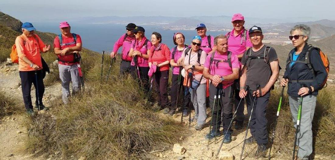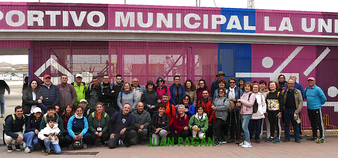 Grupo de senderistas que, con guía, salieron este fin de semana del polideportivo de La Unión para efectuar un recorrido a pie por Las Matiles, El Algar y alrededores del Cabezo Rajao.