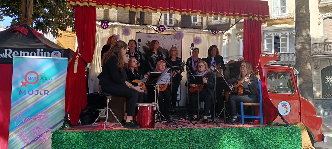 El grupo musical unionense han actuado en este pasado fin de semana en los actos de clausura del 8M en Cartagena, que organizó la Universidad Popular con una muestra de sus talleres y actuaciones en la glorieta de San Francisco, y en la misa de la agrupación de María Magdalena en la iglesia del Rosario de La Unión.