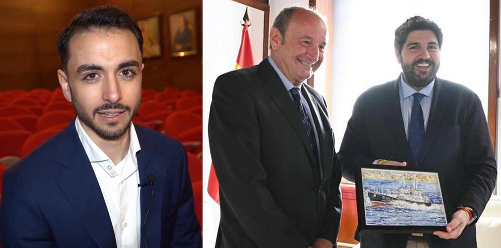 Francisco Jesús Guerra Gómez, pintor de La Unión, ha pintado la obra que la 'Corporación de prácticos de Cartagena' ha entregado al presidente autonómico, Fernando López Miras, en el acto en el que el jefe del ejecutivo regional impuso la insignia de plata de la Región de Murcia a Antonio Lario, práctico que hace unos días impidió que se produjera una catástrofe similar a la del 'Prestige' en tierras gallegas en 2002 al ponerse a los mandos de un petrolero que se acercaba peligrosamente a una zona rocosa de Escombreras.