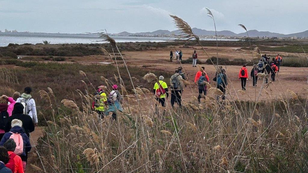 ... por la ruta reivindicativa del GR-92, en el tramo de Los Alcázares a Los Nietos, convocados por la Asociación Bahía Bella. Salida desde el balneario de La Encarnación hacia la carretera hasta Punta Brava y de ahí a la Pescadería del pueblos marmenorense (14 kilómetros). Al paso por el mehir que dividía las zonas de pesca y territorial, donde un compañero leyó un manifiesto en pos de la recuperación de este tramo del 'Sendero mediterráneo'.