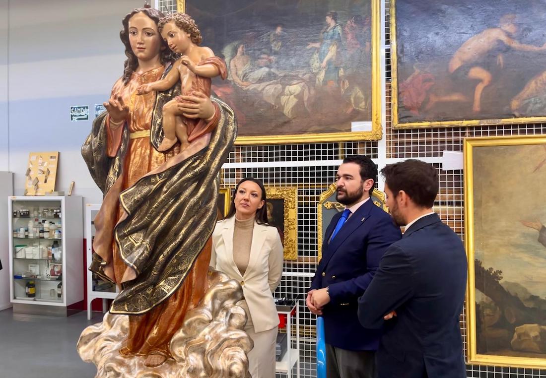 El centro regional de restauración ha consolidado la capa de preparación y pictórica y el soporte de madera de la talla de la Virgen del Rosario, realizada por el ciezano Manuel Juan Carrillo en el año 1946.