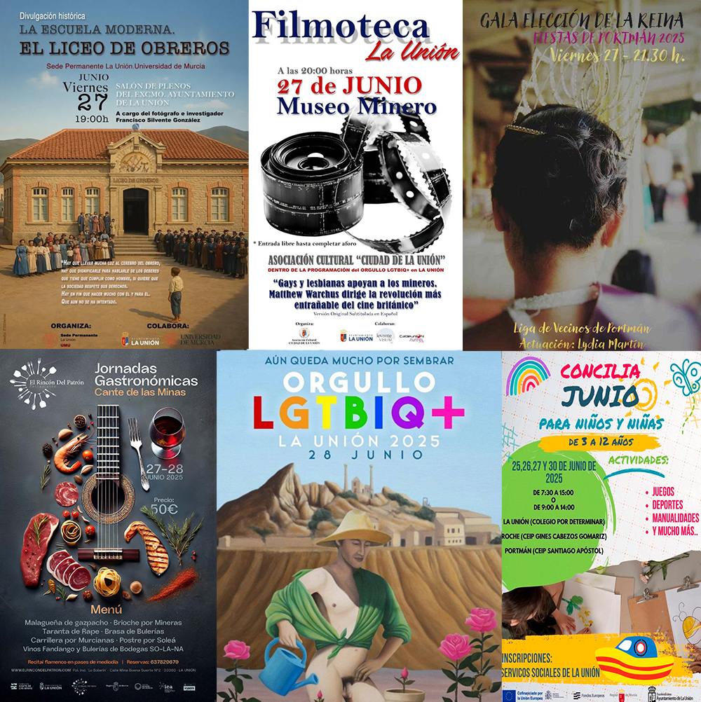 La charla de divulgación histórica sobre 'La escuela moderna. El Liceo de obreros' abre la actividad esta tarde, en la que también hay proyección de película, jornada gastronómica del Cante de las Minas y regresa la elección de una reina de fiestas en Portmán, con una velada enriquecida por la música de Lydia Martín. El sábado tiene como protagonista la celebración del 'Orgullo LGTBIQ+' en la plaza de Joaquín Costa, con pregón de Laura Lucerga y diversas actuaciones. Otros focos están en la exposición de Jesús Ruiz en el Museo Minero y en el programa 'Concilia' de junio en las tres poblaciones del municipio.