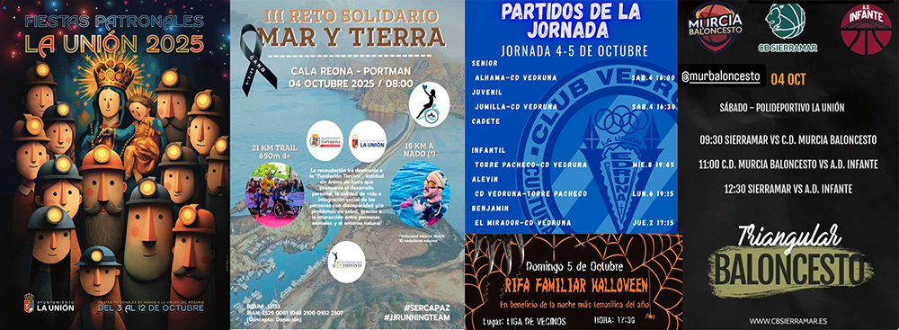 Las Fiestas del Rosario comienzan con fuerza al enlazar el primer fin de semana con la festividad local del martes. Dentro de su programa figura el domingo la 'marcha rosa' contra el cáncer. Además, hay deporte con dos partidos de baloncesto ligueros a domicilio y un triangular en el polideportivo, la jornada de fútbol sala, la visita a Pozo Estrecho del Ciudad de fútbol y el reto solidario 'Mar y tierra' que acaba en Portmán, donde el domingo se celebra un bingo para tener fondos para la fiesta de 'Halloween'.