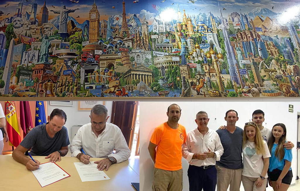 Se trata de un rompecabezas con la espectacular cifra de 42.000 piezas y que está considerado en el grupo de los más grandes del mundo, ocupando un espacio de 749x157 centímetros que ahora luce en una de las salas de la Casa del Piñón tras el interés mostrado por el Ayuntamiento con la familia unionense que lo ha elaborado.