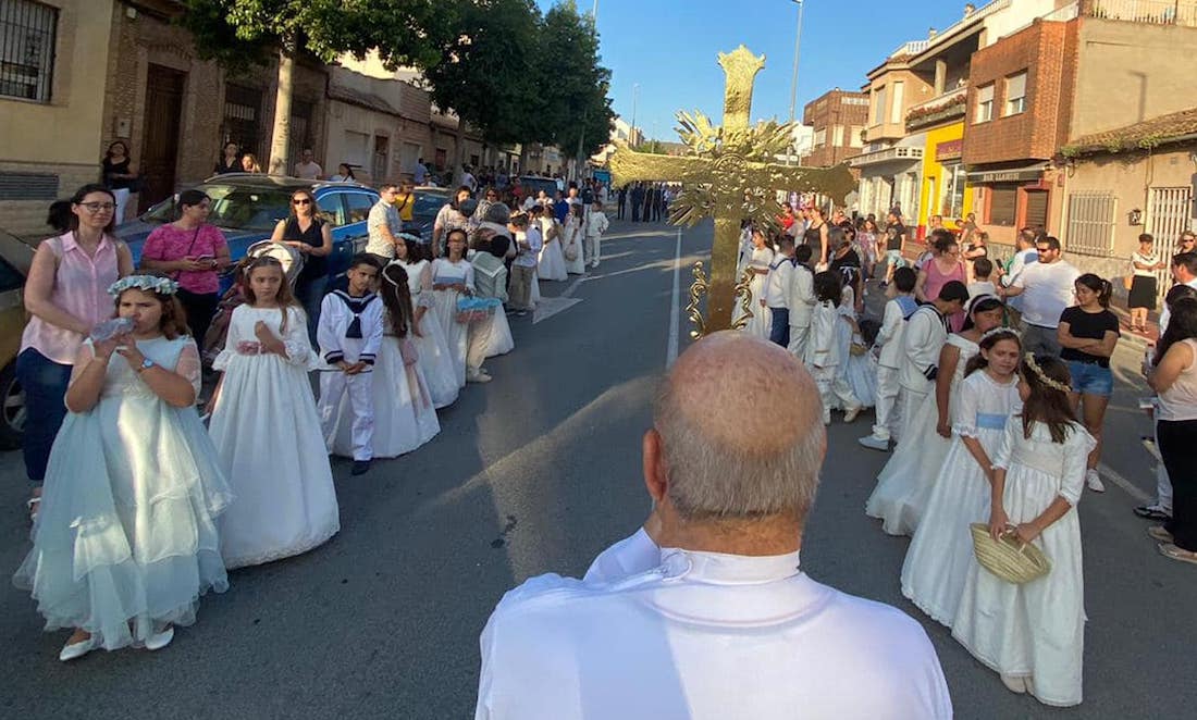 Los chavales que han hecho este año la primera comunión marcharon en la procesión del 'Corpus Christi' que recorrió los altares de la ciudad de La Unión dentro de una comitiva que abría la custodia bajo palio.