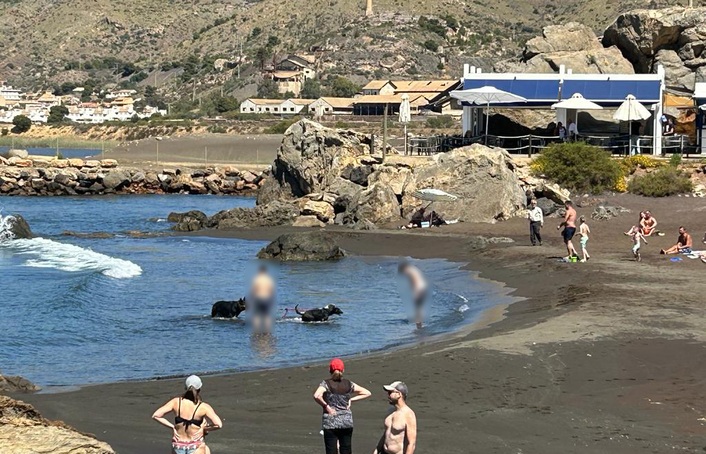 Un lector se ha dirigido a nuestro ‘Buzón de los lectores’ para denunciar que este reciente fin de semana bastantes personas pudieron contemplar como los propietarios de dos perros bañaban a sus mascotas en aguas de la playa en Portmán, “a pesar de que hay un visible cartel que lo prohíbe”, indica el remitente, aportando varias fotos del hecho que denuncia “y que no gustó a los presentes”, añade.