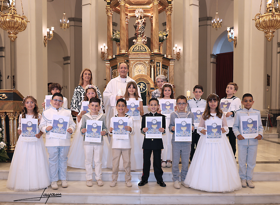Muchas felicidades a este grupo de niños que por primera vez han recibido el sacramento de la comunión de manos del párroco de Nuestra Señora del Rosario de La Unión, Gines Luis Vicente.