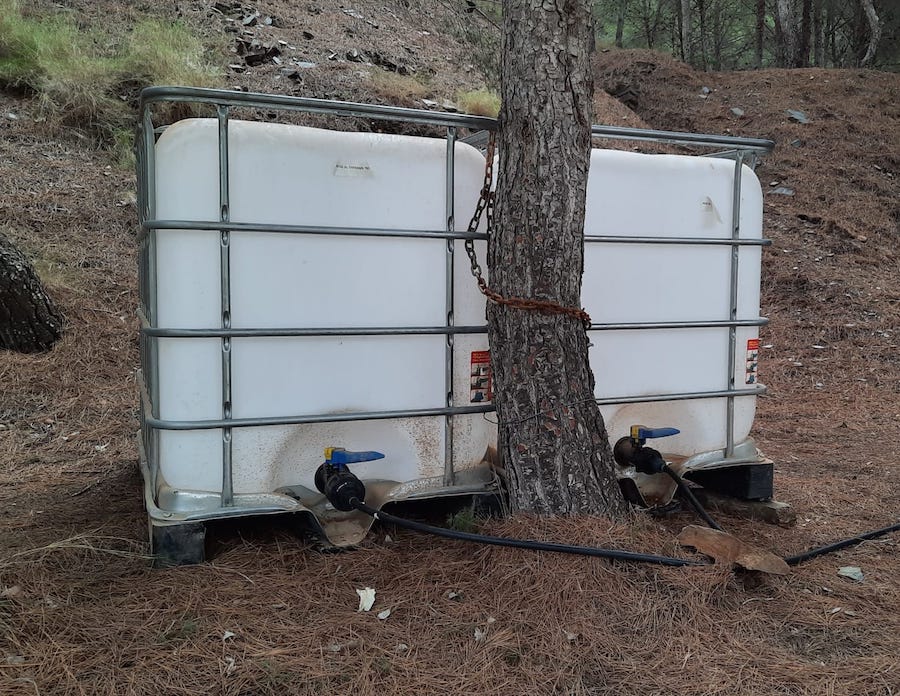 Los voluntarios que trabajan para el mantenimiento y mejora del paraje han ampliado el sistema de riego de las plantas con la instalación de dos contenedores de 700 litros en la parte más alta, desde donde el agua será impulsada con motobombas. “Debido a que afean el entorno, y aunque son provisionales, nos gustaría taparlos, y a la vez protegerlos, para que queden confundidos con el entorno. Por ello, si alguien dispone de brezo que no use o de malla de ocultación (bien marrón, bien mimetizada), estaríamos eternamente agradecidos si decidiesen donarlo para taparlos”, indican.