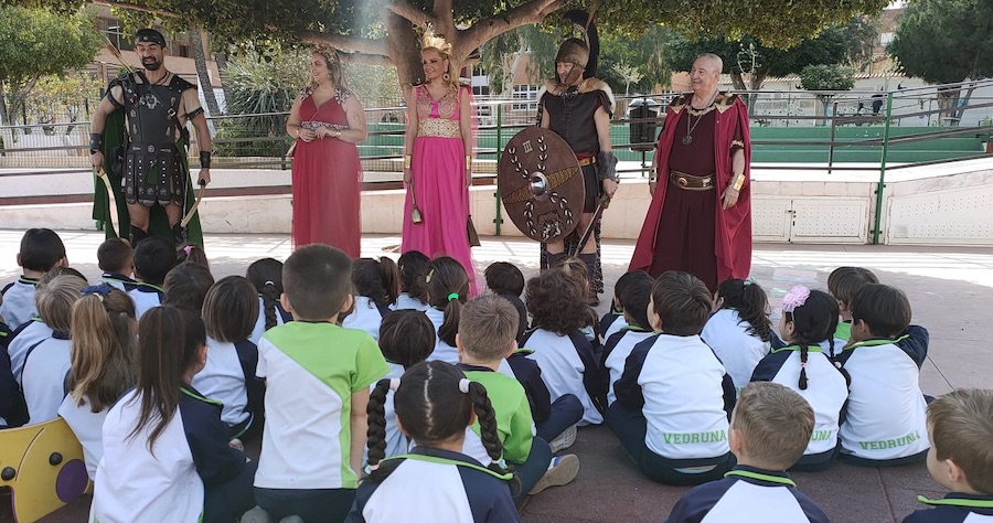 Una representación de las Fiestas de Carthagineses y Romanos visitaron vestidos de época el colegio de Nuestra Señora del Carmen (Carmelitas) de la Unión.