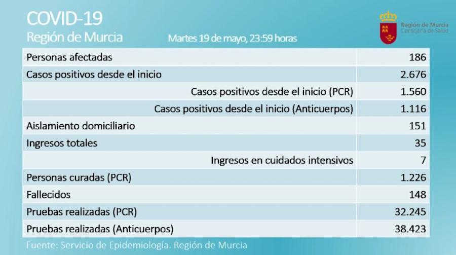 El 15 de marzo se produjeron los dos primeros ingresos por coronavirus en el complejo sanitario del Área II de Salud. La cifra fue a más y hace unas semanas llegó la curva descendente, que ahora tiene la cifra más baja, con tres pacientes en planta y uno en UCI. Respecto a los datos ofrecidos por el Servicio de Epidemiología en las últimas 24 horas, destaca que hay un fallecido más en la Región de Murcia.