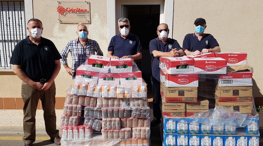 La asociación cultural Orden de los Caballeros de Santa Bárbara ha llevado a cabo la entrega de 1.170 kilos de alimentos no perecederos a Cáritas de La Unión.