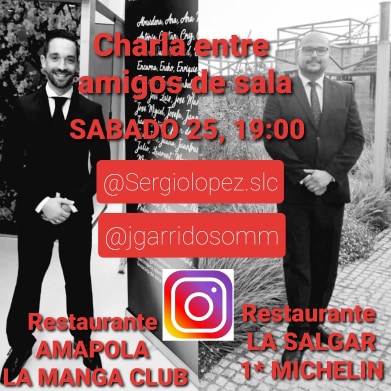 Los unionenses Sergio López y José Luis Garrido, quienes trabajan como jefes de rango en un restaurante de La Manga Club y otro de Asturias, respectivamente, se contactarán esta tarde, a partir de las 19 horas, por Instagram para platicar sobre “la hostelería y la gente que tiene detrás, pues a mucha de ella no se la ve y nos gusta hacer más visible. También hablaremos de la atención a los clientes y de la grave situación en la que quedará el sector cuando pase la crisis sanitaria del Covid-19”, explica al periódico de La Unión el primero de ellos, a quien la pandemia también ha perjudicado a cancerlarse el concurso nacional de jefes de sala que se iba a celebrar en Segovia.
