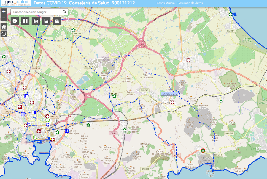 El Gobierno regional crea una multiplataforma que ofrece datos de los recursos sanitarios, cuenta con un callejero para buscar la ruta más cercana al hospital o al centro de salud e informa de los datos del Covid-19 en la Comunidad Autónoma. Para acceder pinchar sobre la imagen.