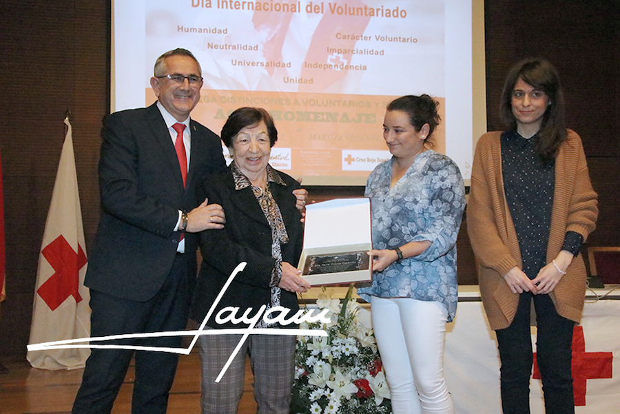 La Asamblea Local de La Unión ha celebrado esta mañana el 'Día internacional del voluntariado' con un acto solemne celebrado en el Ayuntamiento, donde ha tenido lugar la entrega de reconocimientos a los voluntarios destacados del año 2019 y a los socios con más de cincuenta años colaborando económicamente con su cuota y el agradecimientos a los casi cien comercios del municipio que colaboran con todos los eventos que la institución programa. Como cierre, se ha rendido homenaje a dos socias voluntarias que llevan mas de cuarenta años colaborando en el ropero, entrega de alimentos, entrega de juguetes y en todo en lo que Cruz Roja les requiere: Maruja Vicente y Hortensia Roca.