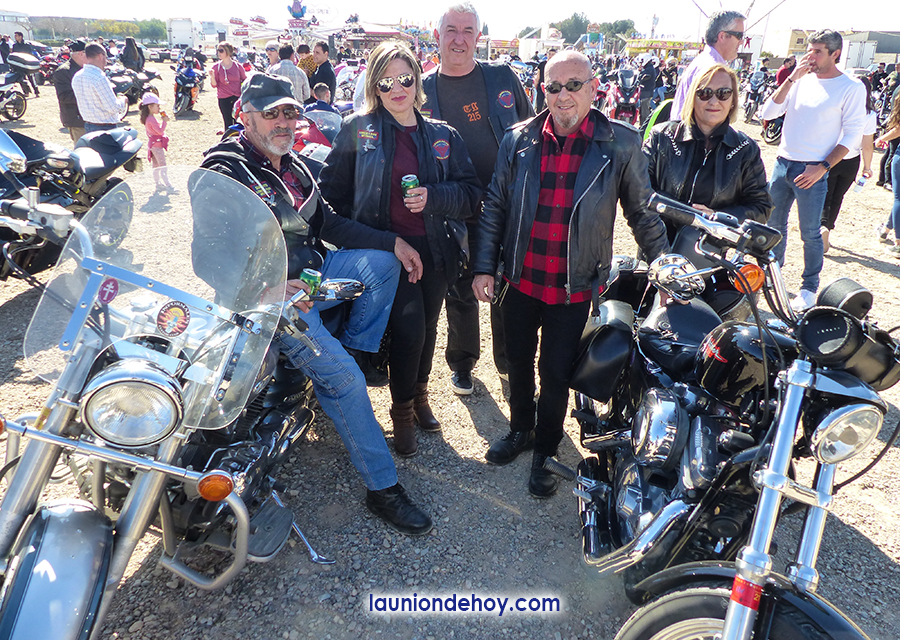 Cinco componentes del club motero 'Liberados Bikers Club' de La Unión en el almuerzo motero de la fiestas de La Palma (Cartagena).