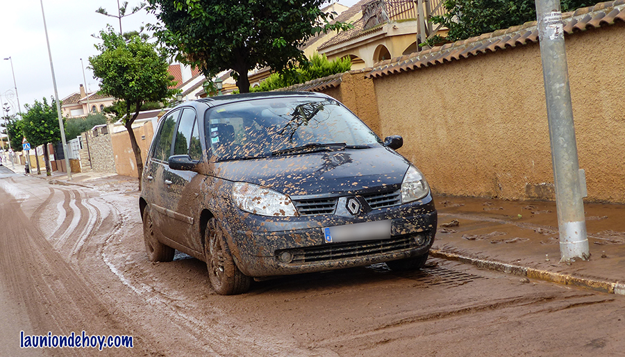 El entorno de la calle Murcia de El Garbanzal es una de las zonas más afectadas de la ciudad de La Unión cuando llueve, pues recoge buena parte del agua que viene de la parte superior de la urbe. En la imagen, un vehículos estacionado en dicha vía.