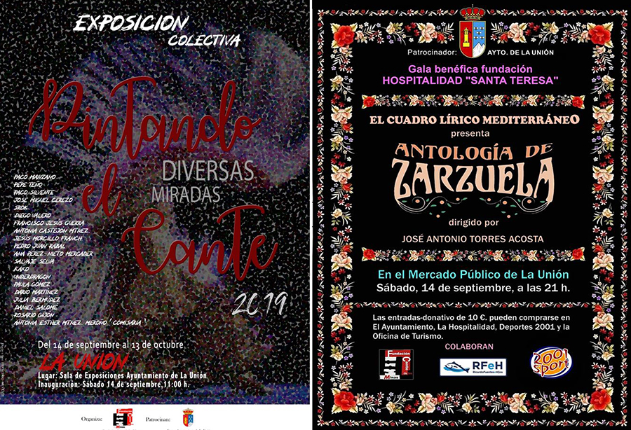 La sala de exposiciones del ayuntamiento de La Unión acogerá el 14 de septiembre, a partir de las once horas, la muestra colectiva 'Pintando el Cante' y el Antiguo Mercado Público será escenario por la noche, a partir de las 21 horas, del regreso de la zarzuela con una antología.