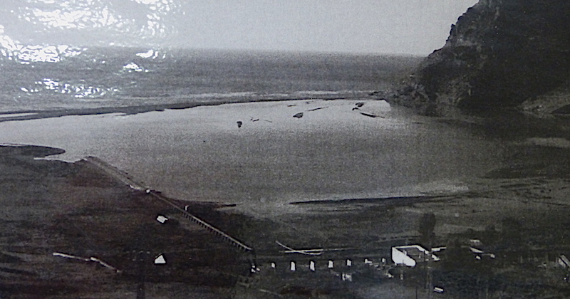 La imagen casi podría confundirse con una actual, pero en absoluto, pues se trata de la época en la que iba desapareciendo la playa de su lugar natural debido a la acumulación de los residuos mineros.