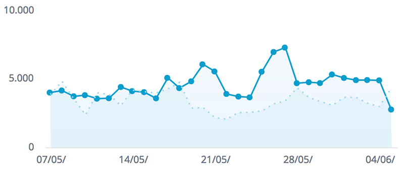 El día de los comicios municipales y la jornada siguiente depararon los mejores registros de La Unión de Hoy durante el mes de mayo. La noche de las elecciones fuimos informando de lo que iba ofreciendo el escrutinio en varios artículos y los vecinos respondieron. La cifra media diaria de lectores (usuarios únicos desde ordenadoes diferentes) que nos dejó el mes se situó en 4.793 internautas.