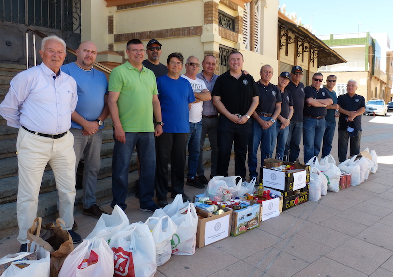 Como cada año, los integrantes de la asociación Caballeros de Santa Bárbara de La Unión han llevado a cabo la recogido de alimentos, que en esta ocasión alcanzó los 400 kilos, que fueron entregados por el presidente, Carlos Bernabé, a su homónimo de Cáritas en el municipio.