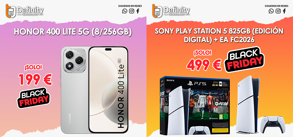 Terminal móvil 'Honor 400 Lite 5G (8/256 GB) por sólo 199 euros y una 'Sony Play Station 5 825GB (edición digital) + EA FC2026' por sólo 499 euros son dos de las increíbles ofertas que tenemos estos días para ti.