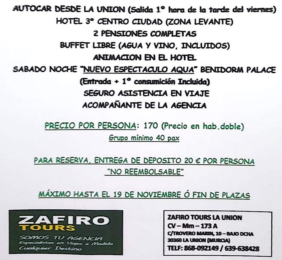 Zafiro Tours, tu agencia de viajes de La Unión, ha organizado para febrero un estupendo viaje a la localidad de la costa alicantina con una propuesta que incluye asistir al nuevo espectáculo 'Aqua' del Benidorm Palace.