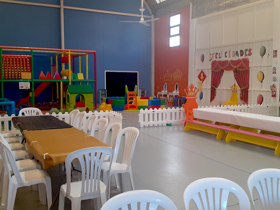 No encontrarás un espacio mayor para tus celebraciones (cumpleaños, bodas, comuniones, reuniones familiares o de amigos, etc). Además, dispones de parque de bolas, futbolín, barbacoa y pista de futbito para pequeños y mayores. En el local de celebraciones del polígono Lo Bolarín de La Unión también se puede alquilar disco-móvil para tus fiestas, además de toro mecánico, colchonetas y un sinfín de atracciones.