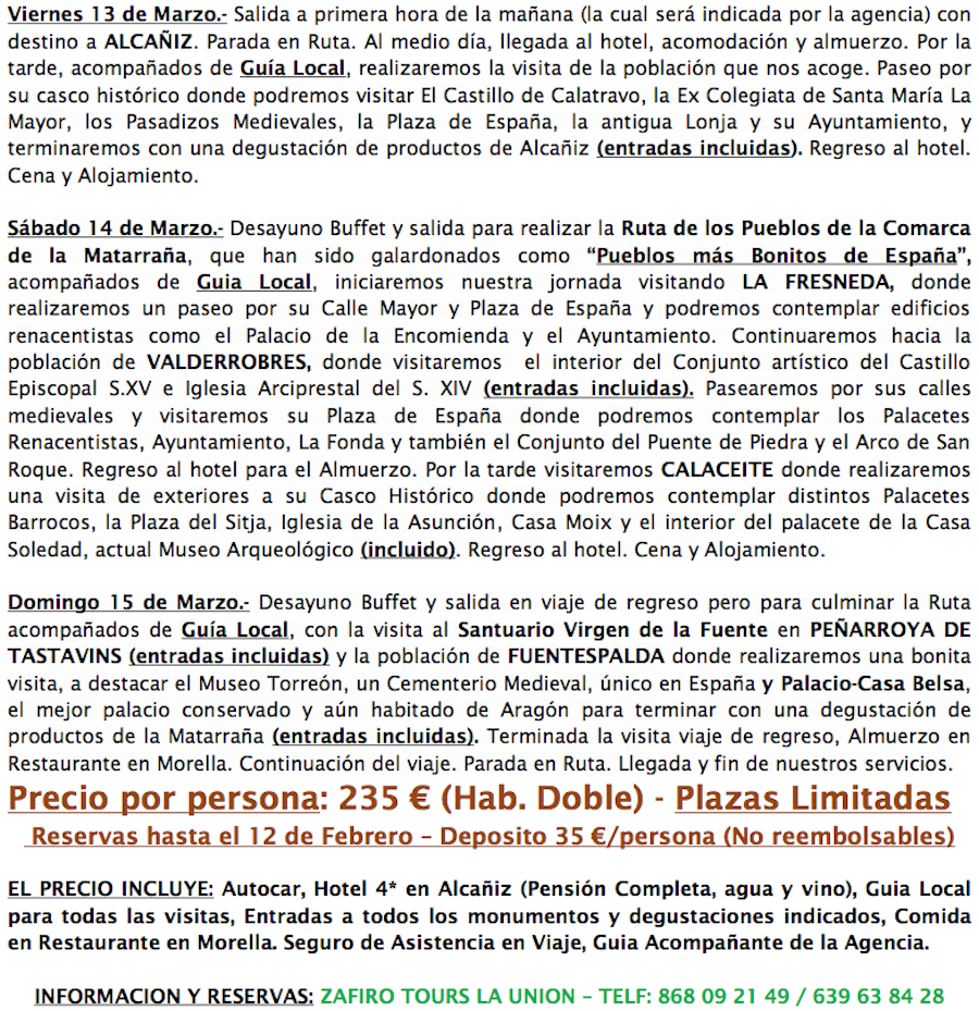 Tu agencia de viajes de La Unión te prepara un viaje cargado de alicientes que combinan la historia, la cultura, la gastronomía, las tradiciones, etc. Reserva en los teléfonos 868 09 21 49 y 639 63 84 28