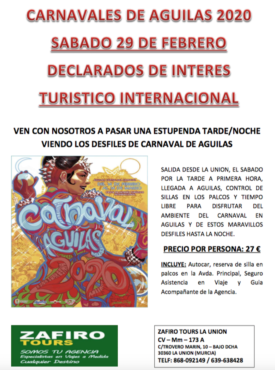 Zafiro Tours te lleva al Carnaval de Águilas 2020